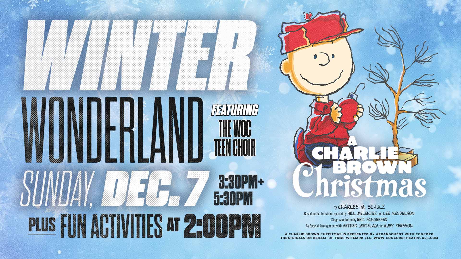 Celebrate the season with us atĀ A Winter Wonderland featuringĀ A Charlie Brown Christmas! Join us Sunday, December 7 for this special, free community event filled with festive activities for the whole family.