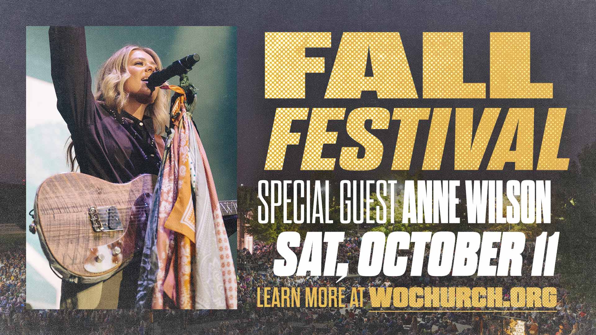 • Saturday, October 11, 6:00pm – Anne Wilson leads worship during service and a post-service worship concert. She’ll be back to lead worship on Sunday morning, October 12, at 9:30am.